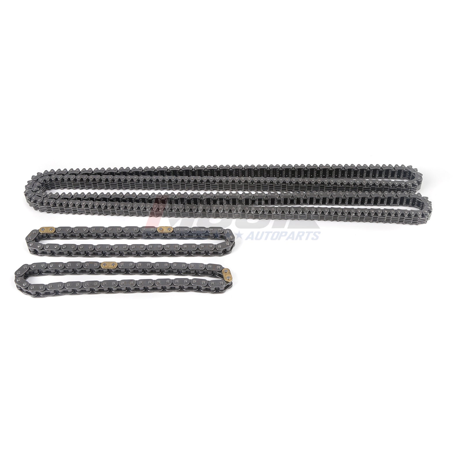 Feature: 1.Original Equipment (OE) quality link-belt type timing chain for exceptional durability and strength. 2.Advanced manufacturing technologies to produce precise-fit camshaft and crank gear sprockets. 3.Premium quality tensioners help to assure correct tension and operation. 4.Ideal for stock replacement and mild performance applications. 5.Direct Fit. Replacing the timing chain kit is very straightforward.