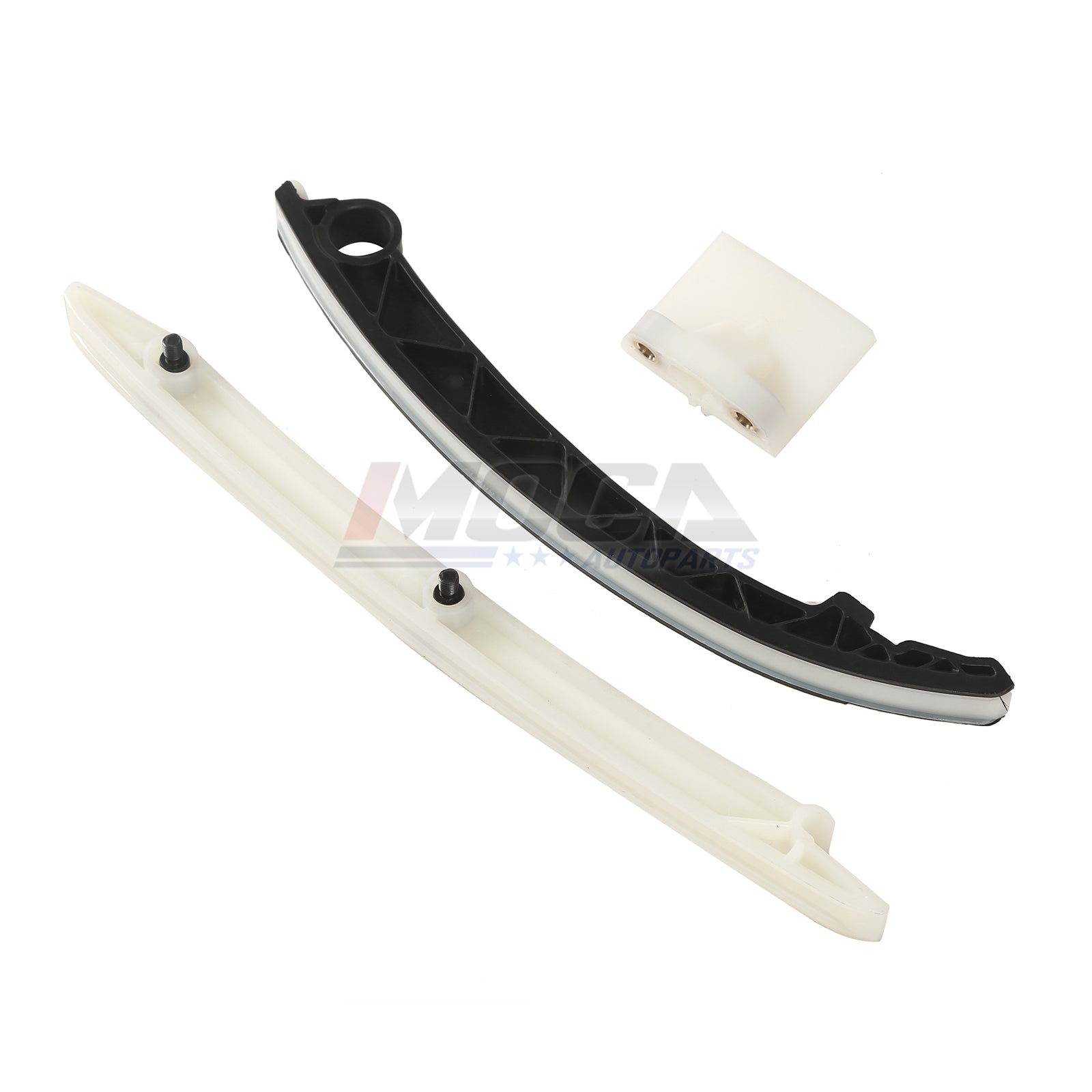 Feature: 1.Original Equipment (OE) quality link-belt type timing chain for exceptional durability and strength. 2.Advanced manufacturing technologies to produce precise-fit camshaft and crank gear sprockets. 3.Premium quality tensioners help to assure correct tension and operation. 4.Ideal for stock replacement and mild performance applications. 5.Direct Fit. Replacing the timing chain kit is very straightforward.